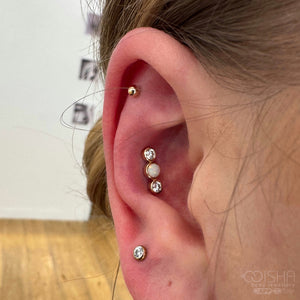 We just adore clusters, especially when they look as gorgeous as this! Boasting our favourite mix of Cubic ZIrcons and White Opal; this is a must-have for any helix, conch, or scapha piercing. Team with an APP approved threadless labret (not included) for a secure and reliable fit.