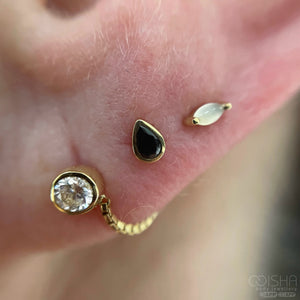 Elevate your piercing with this stunning 14ct gold teardrop end, featuring a captivating black cubic zirconia stone that catches light beautifully. The Mary design combines timeless elegance with contemporary edge, making it the perfect statement piece for those who appreciate refined sophistication. Crafted from premium 14ct gold, this versatile end works seamlessly with various jewellery styles, whether you're dressing up for a special occasion or adding a touch of luxury to your everyday look. Transform your piercing into a conversation starter that reflects your distinctive taste and confidence.